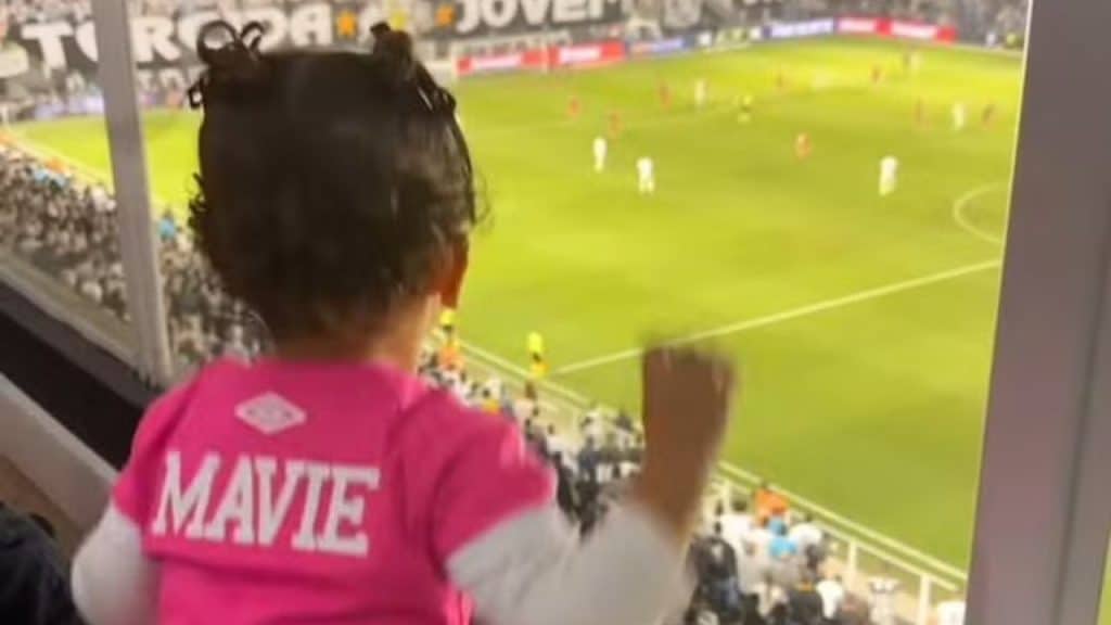 Na última quarta-feira (23), Bruna Biancardi encantou seus seguidores ao mostrar momentos fofíssimos da filha Mavie, fruto de seu relacionamento com Neymar Jr., durante uma partida entre Santos e Internacional, realizada na tradicional Vila Belmiro. Com apenas 1 ano, a pequena apareceu usando um uniforme rosa do Peixe e emocionou o público ao entrar em campo nos braços do pai famoso.