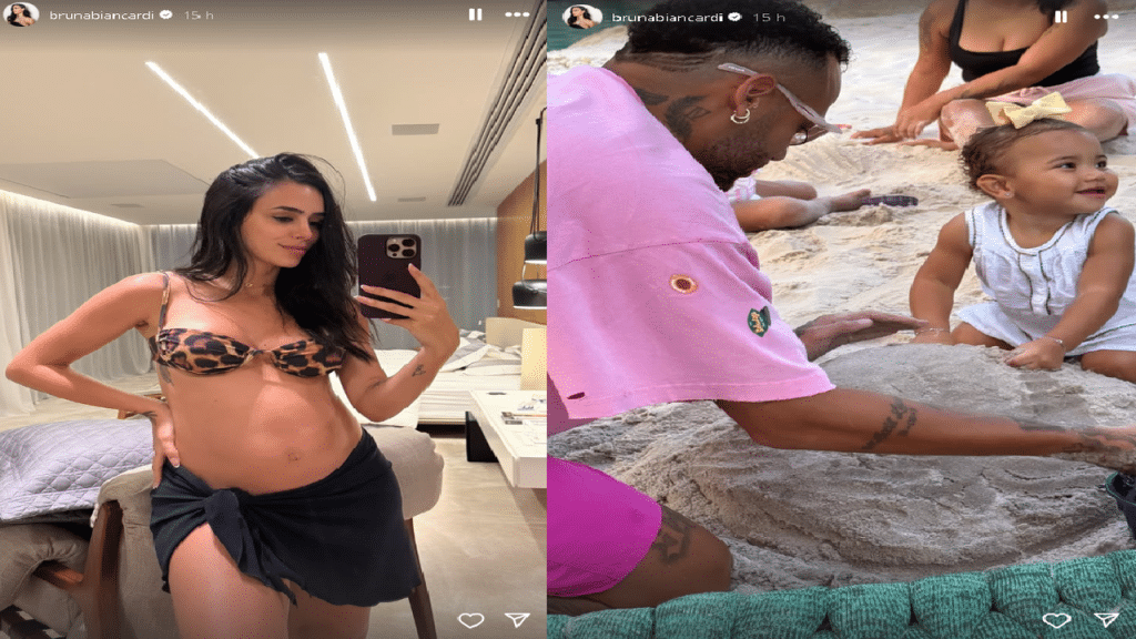 Nas fotos que ela postou, Bruna apareceu deslumbrante com um biquíni de oncinha, exibindo sua barriguinha de grávida enquanto relaxava com Neymar, a filha Mavie e alguns amigos próximos. A vibe era de total descontração e muito amor! O destaque ficou para o momento em que Neymar se dedicou a construir um castelo de areia para a pequena Mavie, mostrando o lado papai coruja que todo mundo adora.