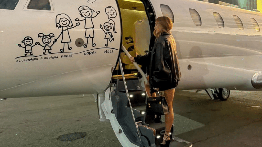 Neste domingo (13), Virginia Fonseca usou suas redes sociais para mandar um recado enquanto embarcava para São Paulo. A influenciadora, que está separada de Zé Felipe, publicou uma série de fotos entrando em seu jatinho personalizado, decorado com a imagem da família, e escolheu como trilha sonora a música “Interesseira”, de Luísa Sonza.