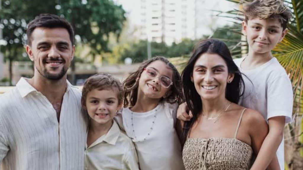 Durante uma conversa no programa Encontro, o ator destacou: “Falo muito com a minha esposa sobre o orgulho que tenho dela também por abrir mão da profissão dela para que a gente pudesse construir uma família unida”. Casados desde 2016, os dois são pais de três crianças: Joaquim, de 11 anos, Maria, de 8, e Vicente, de 5.