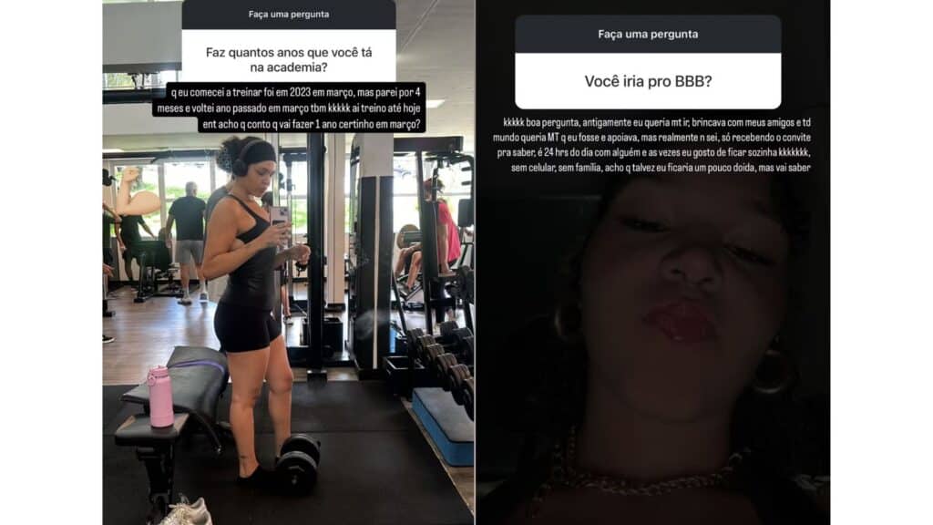 Durante a conversa, Aysha foi questionada sobre a realização de cirurgias plásticas, tema que muitas vezes gera curiosidade nas redes sociais. A atriz, que se tornou conhecida por seu papel como a personagem Laura no remake da novela Carrossel (SBT), foi clara ao afirmar que, no momento, não tem interesse em recorrer a intervenções estéticas. “No momento, não [penso em fazer], o meu objetivo é foco na academia, mesmo”, disse Aysha. Essa resposta reflete seu compromisso com a mudança de estilo de vida adotada ao longo dos últimos meses, focando na atividade física como principal forma de transformação.