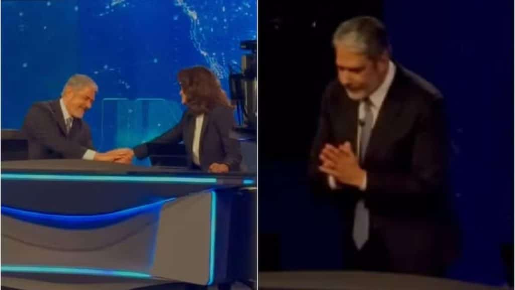 Assim que o jornal terminou, Renata Vasconcellos segurou a mão de Bonner, conversou com ele e logo o abraçou em um gesto de carinho. Na sequência, a jornalista puxou aplausos e fez questão de celebrar o parceiro de bancada.
