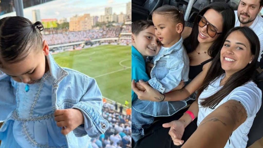 Acompanhada pela mãe, Mavie assistiu ao jogo com um look especial digno de conto de fadas, mesmo que a partida tenha terminado sem gols. O confronto, válido pela 22ª rodada do Campeonato Brasileiro, ficou no 0 a 0, mas quem ganhou os holofotes foi a pequena torcedora.