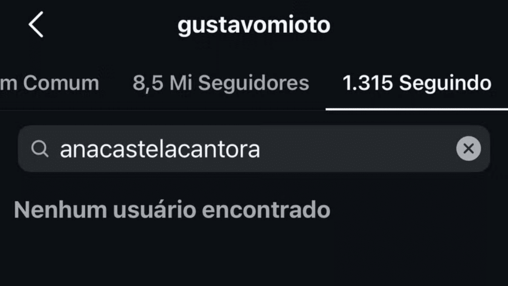 Gustavo Mioto, de 28 anos, gerou comentários nas redes ao deixar de seguir Ana Castela, de 21, após rumores de um suposto romance entre a cantora e Zé Felipe, de 27. O gesto chamou atenção dos fãs do ex-casal, especialmente porque Ana Castela ainda segue o sertanejo, enquanto Zé Felipe não mantém nenhum tipo de interação nas redes com Mioto.