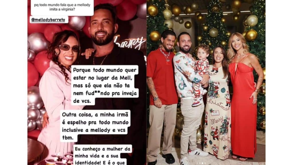 William seguiu o desabafo reforçando o quanto sua esposa é importante para ele e como ela tem sua própria identidade, algo que, segundo ele, é o que realmente importa. E mesmo reconhecendo que a irmã, Virginia, é uma referência para muita gente, inclusive para Mellody, isso não diminui em nada o valor e a individualidade da esposa.