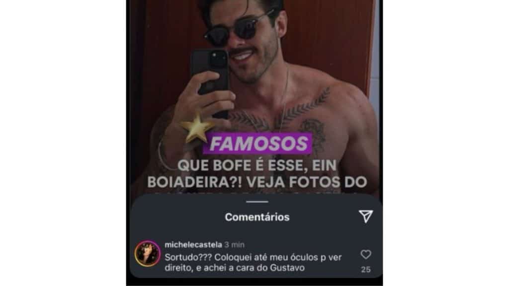 “Sortudo? Coloquei até meu óculos para ver direito e achei a cara do Gustavo”, escreveu a mãe de Ana Castela, referindo-se ao novo affair de sua filha. No post, a legenda descrevia Bruno como “sortudo”, uma vez que ele se tornaria o novo namorado da cantora, que possui uma legião de fãs e admiradores.