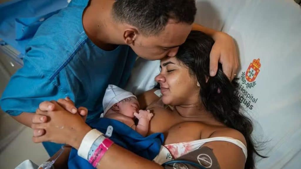 Ary Mirelle deu à luz Joaquim, segundo filho do casal, na manhã deste domingo (7), no Recife. O bebê nasceu de parto normal, às 10h09, pesando 3,3 kg. João Gomes e a influenciadora, ambos de 23 anos, já são pais de Jorge, de 1 ano e sete meses, e celebraram a chegada do caçula nas redes sociais.