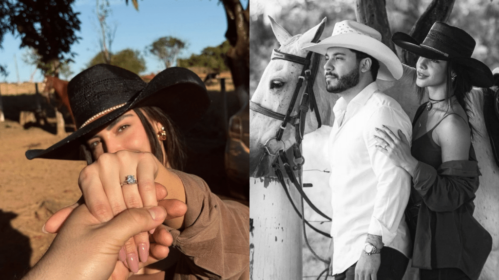 A influenciadora Gabriela Versiani anunciou neste domingo (24/8) o noivado com o cantor sertanejo Murilo Huff. Nas redes sociais, Gabriela compartilhou imagens do pedido de casamento, mostrando detalhes do elegante anel que recebeu do músico.