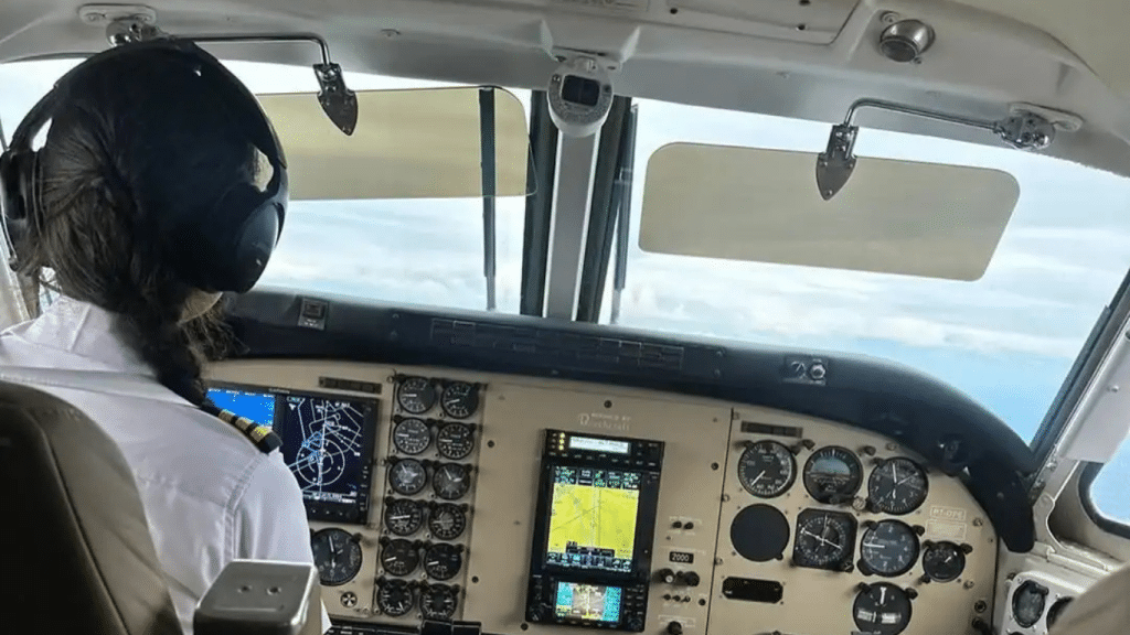 Além disso, ela possui habilitação válida como Piloto Comercial (PC) e já acumula experiência em diferentes tipos de aeronaves. Mesmo jovem, sua formação sólida e a vivência na prática mostram que ela está mais do que capacitada para enfrentar desafios dentro da cabine.