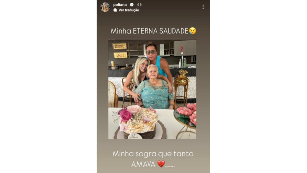 A foto foi tirada na casa da família em Goiânia, e Poliana não escondeu a emoção ao reviver o momento. “Minha eterna saudade”, escreveu ela na legenda da imagem, com um emoji de carinha triste. Ela ainda destacou o quanto Carmem foi importante para sua vida, dizendo: “Minha sogra que tanto amava…”,.