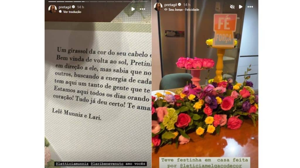 O apoio da família e dos amigos é fundamental para seu bem-estar. Seu pai, Gilberto Gil, também se pronunciou sobre o tratamento da filha, elogiando sua força e resiliência.