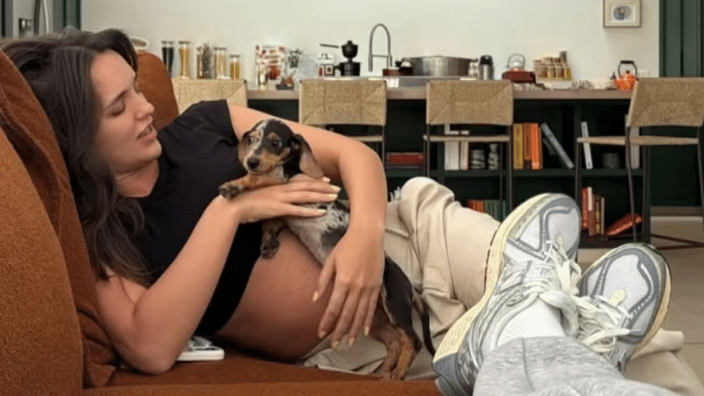 “Eu como, sem pensar: ‘Ah, preciso fazer uma dieta.’ Eu tento comer saudável, comer bem, leve, sem pressão”, disse. A atriz reforça que o foco é escolher alimentos que não façam mal para ela nem para a bebê, mantendo o equilíbrio durante toda a gestação.