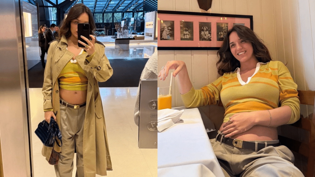 “Eu como, sem pensar: ‘Ah, preciso fazer uma dieta.’ Eu tento comer saudável, comer bem, leve, sem pressão”, disse. A atriz reforça que o foco é escolher alimentos que não façam mal para ela nem para a bebê, mantendo o equilíbrio durante toda a gestação.