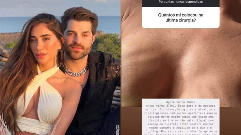 Ela explicou nas redes sociais que usava próteses de 375ml e decidiu fazer a troca por uma versão um pouco menor, de 360ml. Mas o foco da cirurgia não foi o tamanho, e sim corrigir as dores e essas ondulações indesejadas. “Queria colocar menor, porém teria que fazer uma cicatriz em L e eu não quis”, contou Romana. Ou seja, ela optou por manter um tamanho parecido, mas resolver o problema que estava incomodando.