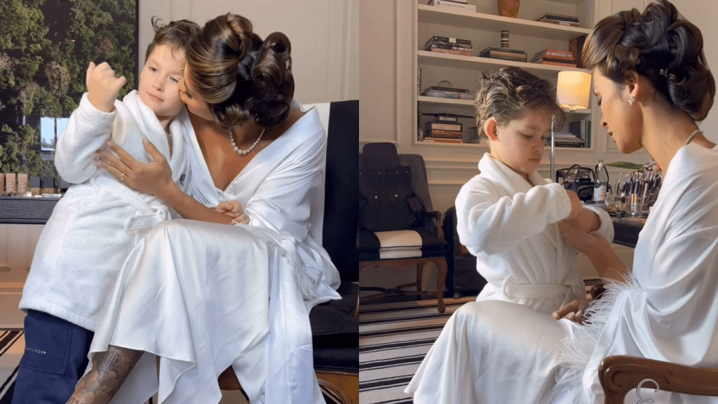 A manhã do grande dia começou com emoção para Tainá Castro. No luxuoso Palácio Tangará, em São Paulo, onde se prepara para o casamento com o jogador Éder Militão, a influenciadora foi surpreendida pela visita carinhosa do filho, Matteo. Já de roupão, maquiada e usando o colar de brilhantes escolhido para a cerimônia, ela foi abraçada pelo menino no quarto do hotel e não escondeu a ansiedade.