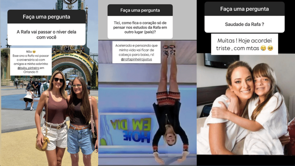 Rafa Justus completará 16 anos na próxima segunda-feira (21/7) e, diferente de anos anteriores, Ticiane contou que não estará presente fisicamente na data. “Esse ano a Rafa vai passar o aniversário só com amigas e minha sobrinha em Orlando”, revelou.