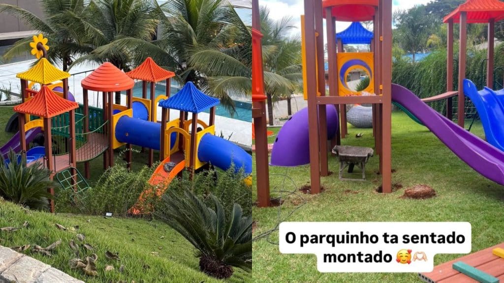 Nos stories de seu Instagram, Zé Felipe mostrou aos seguidores que o espaço ao ar livre já começou a ser transformado. O jardim da mansão ganhou vida com a instalação de brinquedos, incluindo dois escorregadores, com o intuito de garantir momentos de diversão para as crianças. “O parquinho está sendo montado”, escreveu ele na legenda de um dos vídeos.