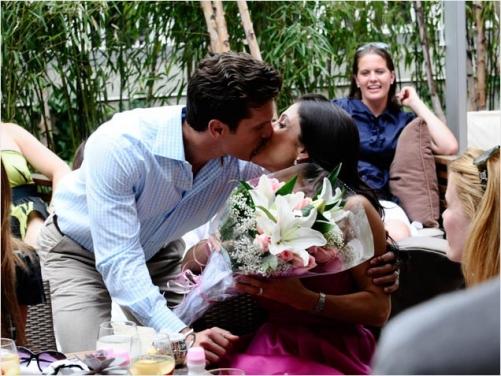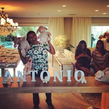 Chá de bebê não precisa ser só para mulheres, convide o futuro papai para participar. Quem sabe ele não faz como o de Bethenny Frankel e ainda traz flores para comemorar.