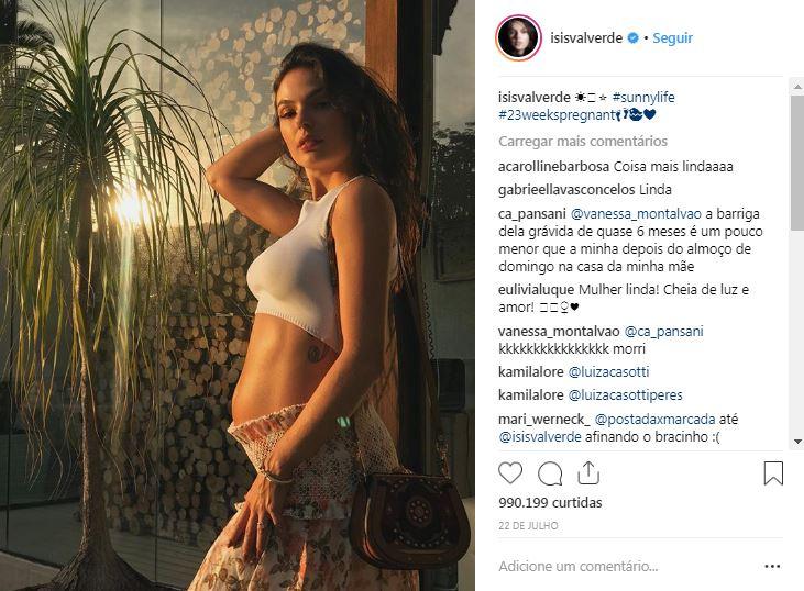 Na última quarta-feira (29), Isis compartilhou mais uma imagem de biquíni com a barriga bem à mostra. “Quase 30 semanas com você!”, ela escreveu na legenda, comemorando a reta final da gestação. Os fãs a elogiaram e desejaram coisas boas.