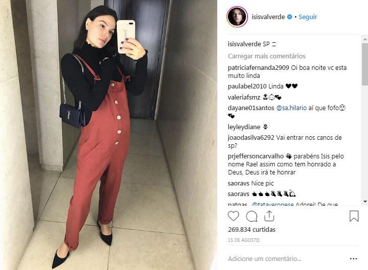 Grávida de sete meses do primeiro filho, a atriz Isis Valverde, de 31 anos, sempre compartilha registros de sua gestação em seu perfil no Instagram. Casada desde junho com o modelo André Resende, a atriz está à espera de um menino. O casal contou que o nome do bebê será Rael. “Queríamos um nome curto e forte. Rael significa arcanjo da luz, do sol”, disse a atriz, em entrevista ao portal O Globo.