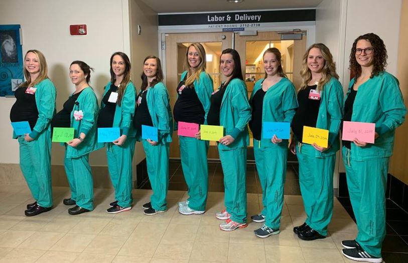 Algo muito inusitado aconteceu na maternidade do Centro Médico de Maine, nos EUA: nove enfermeiras estão grávidas ao mesmo tempo.