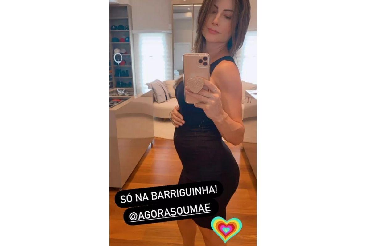 “Só na barriguinha”, escreveu Aline, com uma foto exibindo a silhueta da gestação. No registro, a mãe aparece usando um vestido preto colado e, por causa dele, e possível perceber o tamanho da barriga da esposa de Daniel. Linda!