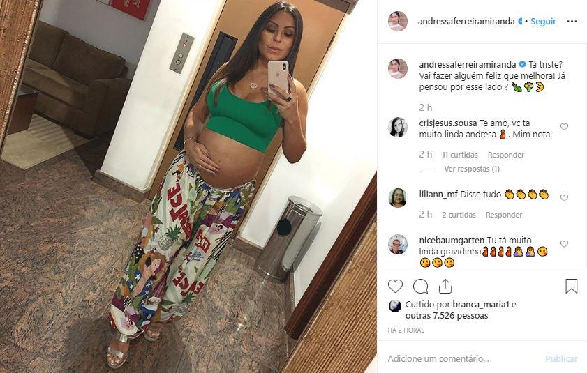 Os seguidores deixaram muitos comentários elogiando Andressa Ferreira. “Tá tão linda com esse barrigão”, comentou uma seguidora. “Estamos muito ansiosos para conhecer o rosto desse anjinho”, disse outro fã. “Você ficou ainda mais linda grávida“, elogiou outra seguidora.