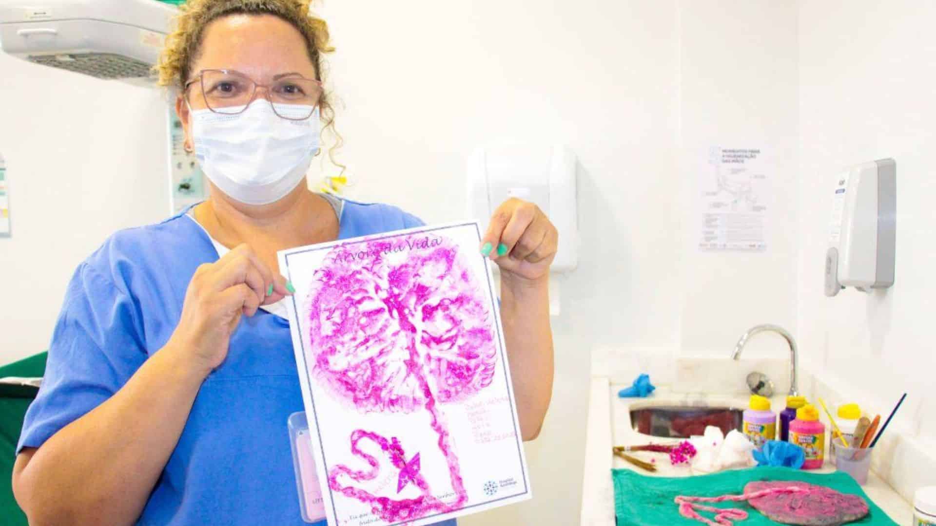 O carimbo de placenta, também chamado de árvore da vida, é uma maneira de tornar o momento do parto ainda mais humanizado (Foto: Divulgação / Hospital Azambuja)