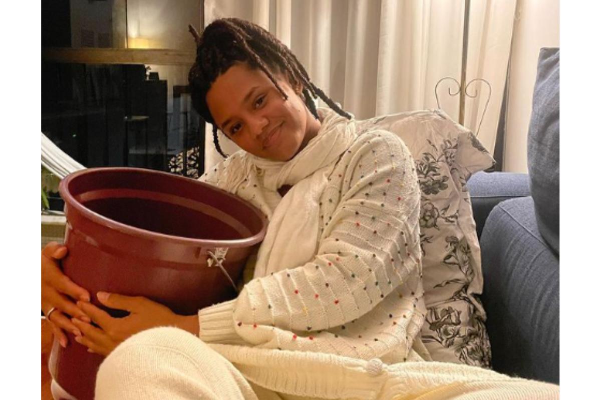 Ela começou o texto escrevendo: “Bom dia, gente! Além do Dan Ferreira [marido de Jéssica] que tem sido um companheiro maravilhoso, esse aí é meu melhor amigo nos últimos meses: o famoso BALDE”, explicou a atriz postando uma foto ao lado de um balde.
