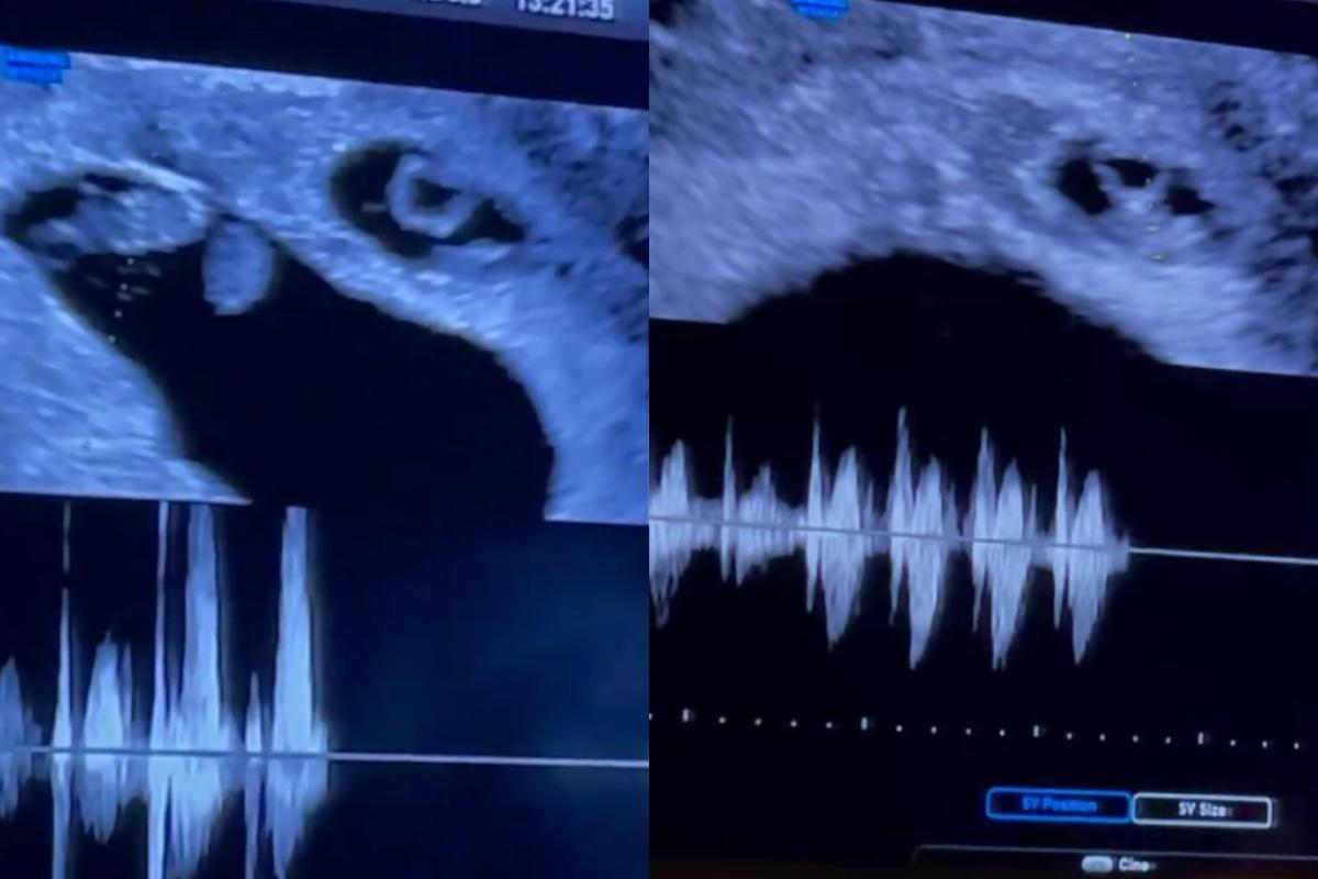 Na legenda da publicação, a modelo escreveu: “Registros de uma mamãe feliz. 1º video: Batimento do coração de um bebê. 2º video: Batimento do coração do outro bebê. Estou de 7 semanas e 2 dias e mamãe de gêmeos”.