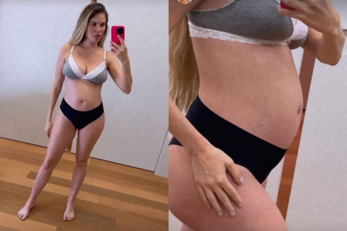 Em uma publicação realizada nos Stories do Instagram, ela mostrou que sua barriga está crescendo assim como o estiramento de seus quadris. A influenciadora digital comentou que apenas os braços ainda não teve um acúmulo de gorduras.”Vamos trabalhar com realidade?”, iniciou a mãe no vídeo. “A perna já bate uma na outra e olha aqui minhas celulites”, disse ela ao mostrar como estão as suas coxas.