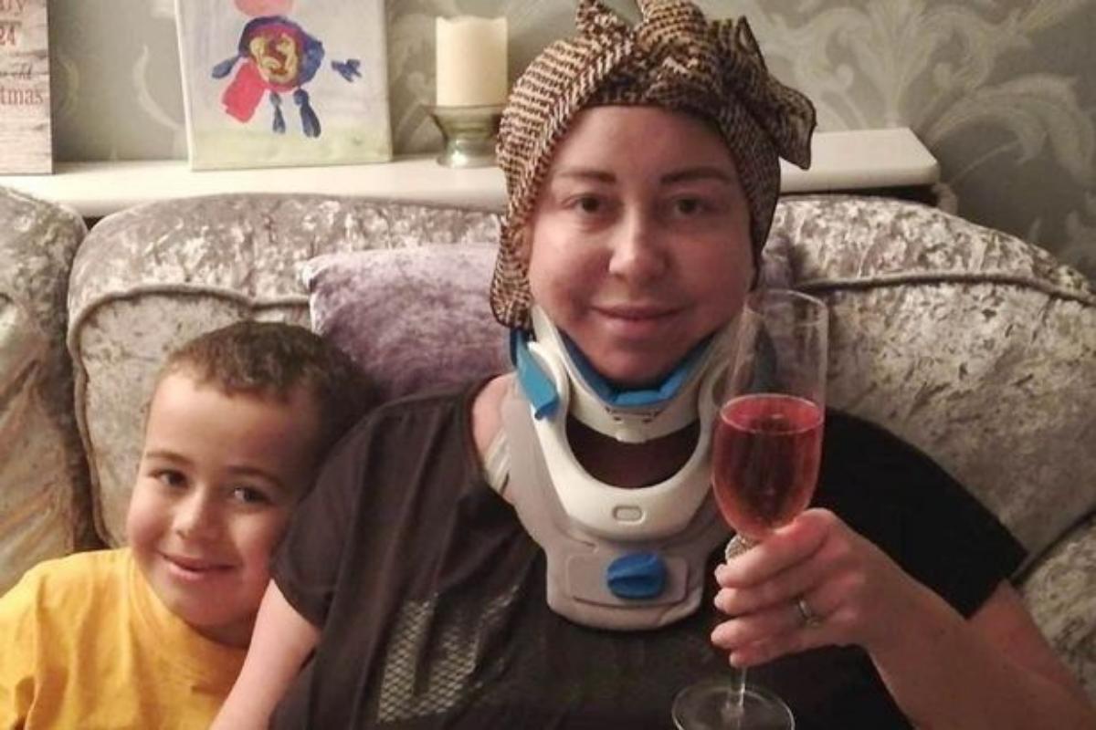 Danielle em casa ao lado filho durante a recuperação (Foto: Reprodução/ Mirror)
