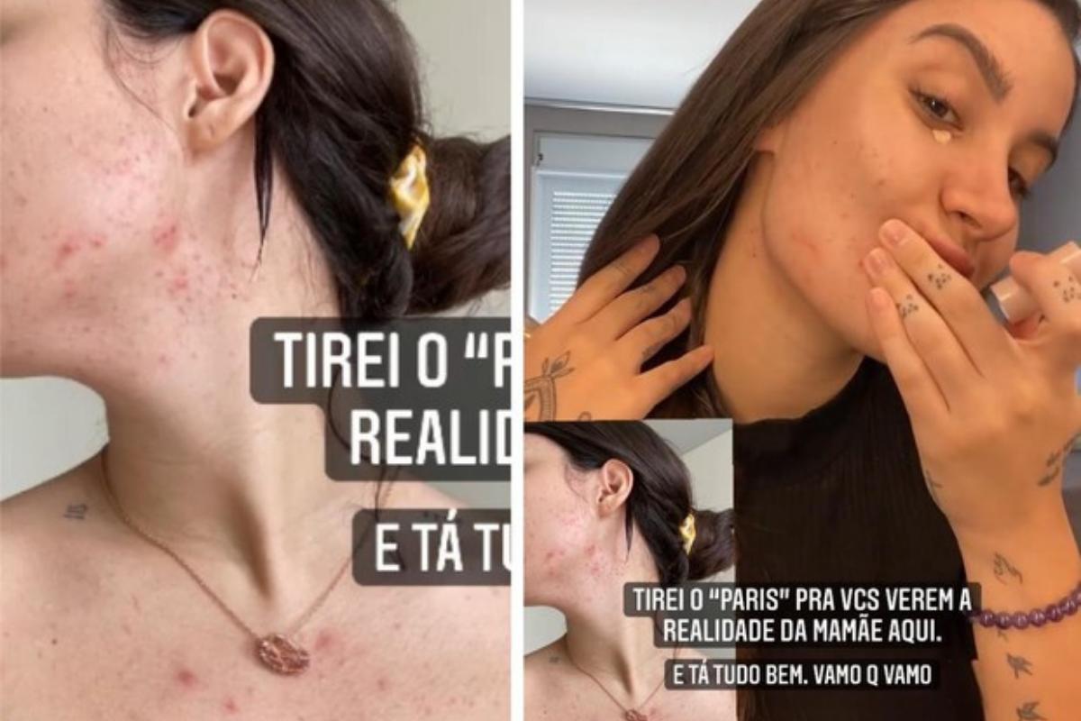 Ela ainda aproveitou para tirar o filtro da câmera do Instagram e mostrou a situação atual do seu rosto e colo, no vídeo é possível perceber que os locais possuem bastante acne inflamada. “Olha como está minha pele… Achei que quando parisse isso mudaria, mas estou esperando, e até agora essa é a minha realidade. Até deu uma pioradinha, mas seguimos o baile. Tirei o [filtro] Paris pra vocês verem a realidade da mãmãe aqui. E tá tudo bem. Vamo que vamo”, disse.