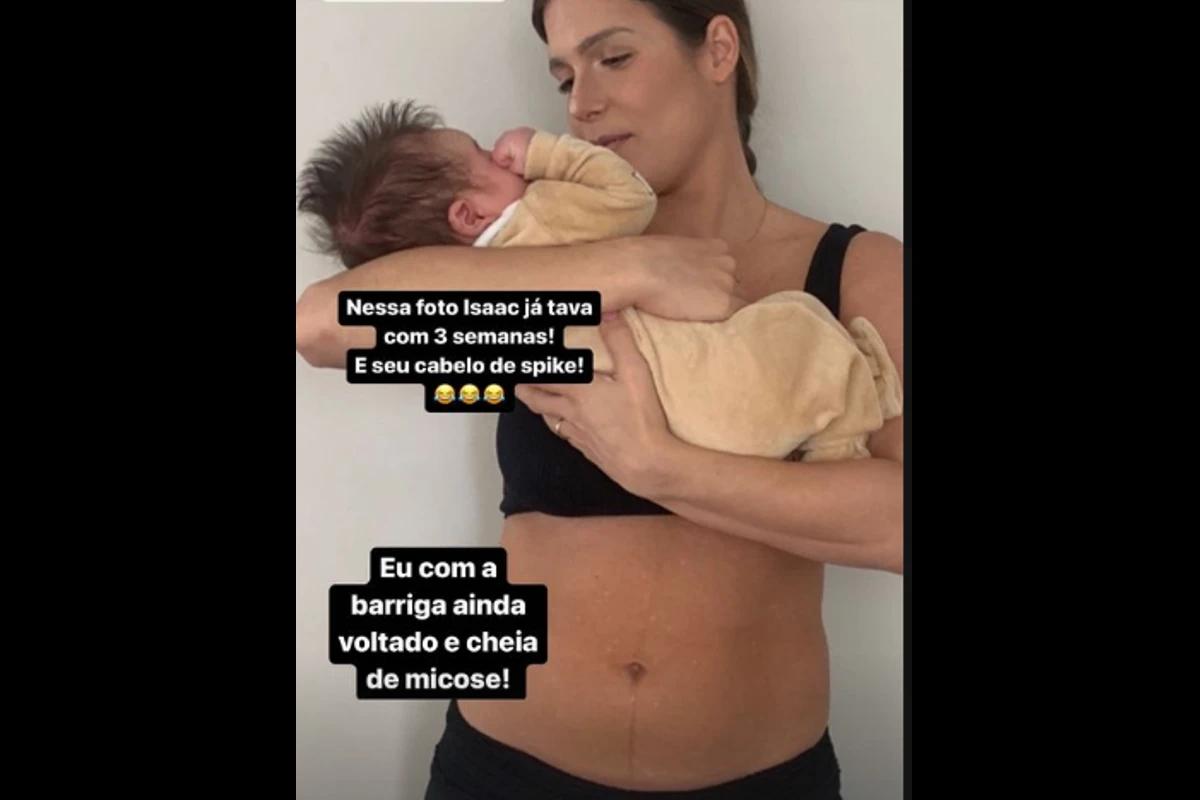 Ela continou dizendo que: ”O que estou fazendo é que estou amamentando e falam que isso ajuda a emagrecer. Acho que realmente está ajudando. Mas tudo volta para o lugar com o tempo”, relatou a mãe de primeira viagem na publicação feita nos stories do Instagram. Além disso, a atleta também fez questão de mostrar de vários ângulos a barriga para mostrar como ela está durante o período de pos-parto: “Ainda está molinha, mas tudo voltando ao seu lugar. Estou feliz e satisfeita, sem pressa para voltar à academia”.