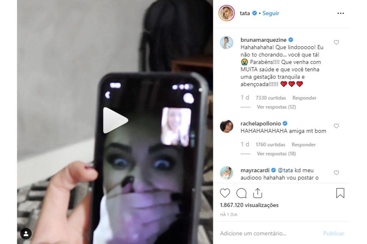 Acontece que os influenciadores digitais usaram as redes sociais para anunciar que estão esperando pelo primeiro filho. Para ajudar, Tata publicou um vídeo com a reação dos familiares e amigos mais próximos ouvindo a notícia de que ela estava grávida e Bruna não conseguiu lidar com essa emoção.