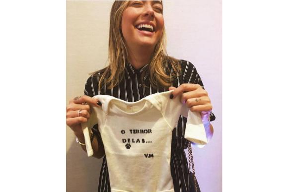 No final de fevereiro, Carol Dantas anunciou que está esperando o segundo filho, fruto de seu relacionamento com Vinícius Martinez, seu noivo. Desde então, todo mundo quer saber mais detalhes sobre o irmão do Davi Lucca. E o nome já foi escolhido! No sábado (30), o pai do bebê publicou uma foto e compartilhou com os seguidores de uma forma supercriativa. Vinicius decidiu presentear o filho com um body escrito “O terror delas V.M”, olha só: