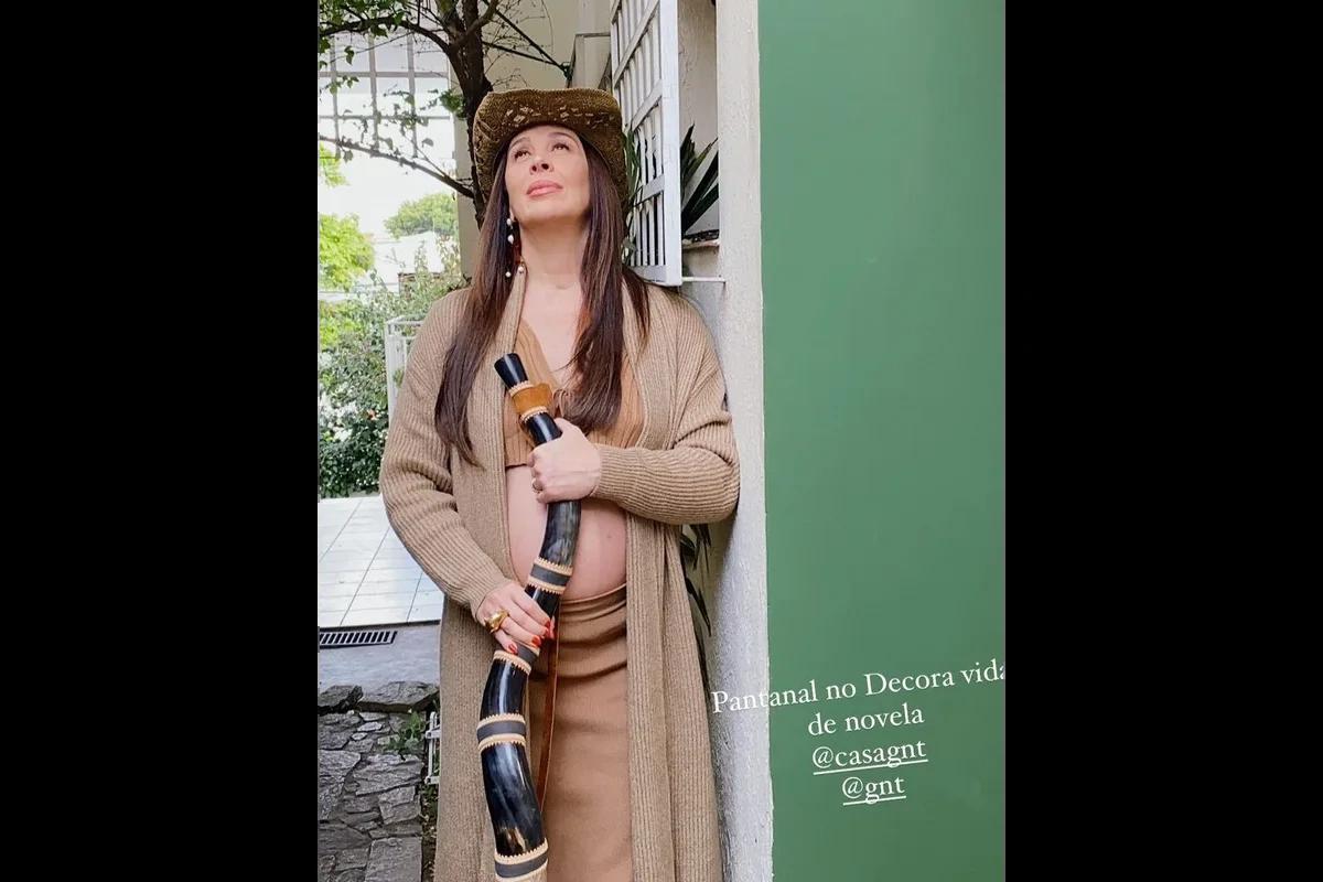 No feed da rede social, ela publicou uma foto com uma roupa inspirada na novela. Com um look composto de tons terrosos, chapéu e berrante, ela deixou a barriga grávida de fora.”Pantanal no Decora: Vida de Novela”, escreveu a artista, nos bastidores do programa, do qual é apresentadora desde setembro.