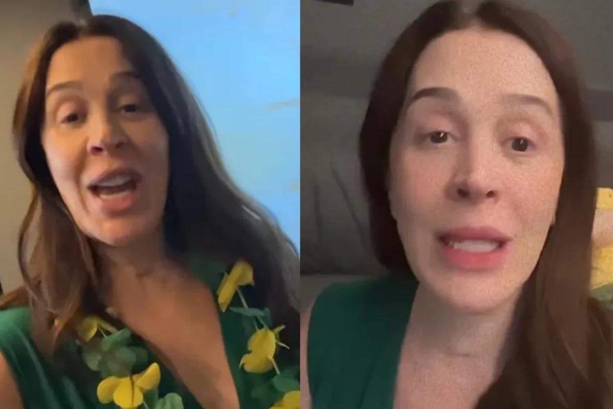 “Estamos na Copa da Raia num nervoso. Luquinha [o filho que gera] está chutando e emocionalmente muito abalado com esse primeiro tempo. Mas a nossa Seleção está muito bem! Precisa do olhar do Tite agora. Olha eu, uma comentarista esportiva. Quando a gente está grávida, a gente fica muito ‘out’. Não pode beber, só pode comer coisa saudável. Então, a gente quer se inserir. Por isso estou me inserindo, só para me sentir dentro da Copa. Vocês entendem, né?!”, explicou.