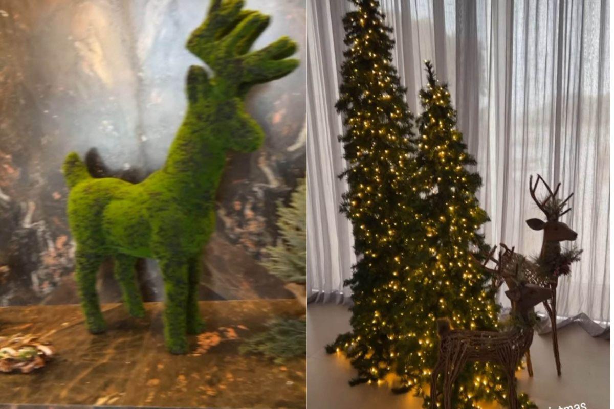 Para compor a decoração ela também colocou esculturas de grama em formato de rena.  Além disso, a atriz enfeitou a escada com  um boneco de um soldado verde do tamanho dela.