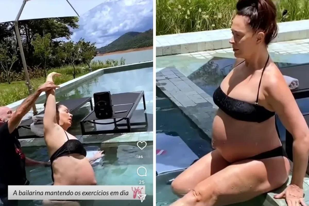 Nesse domingo, dia 11 de dezembro, a atriz Claudia Raia mostrou nas redes sociais que mesmo grávida, ainda continua praticando balé. Na água, a mãe de 55 anos de idade, aparece com o barrigão a mostra e fazendo exercícios, junto com um professor a orientando.