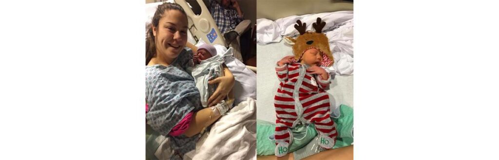 Depois de mais de 40 horas em trabalho de parto, muita dor, uma suspeita de uma provável pedra no rim. A mãe entrou na sala de cirurgia para fazer uma cesárea de emergência. Estava tudo bem com o bebê, mas a pressão dela estava muito alta:”O médico de emergência originalmente pensou que eu tinha pedras nos rins. Mas quando fizeram um ultrassom não encontraram as pedras e, sim, um bebê prontinho para sair”