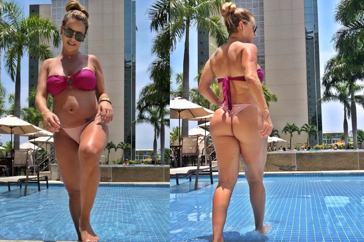 Dany Bananinha mostra a barriga de grávida em foto de biquíni e confessa: “A Lara está dançando”;