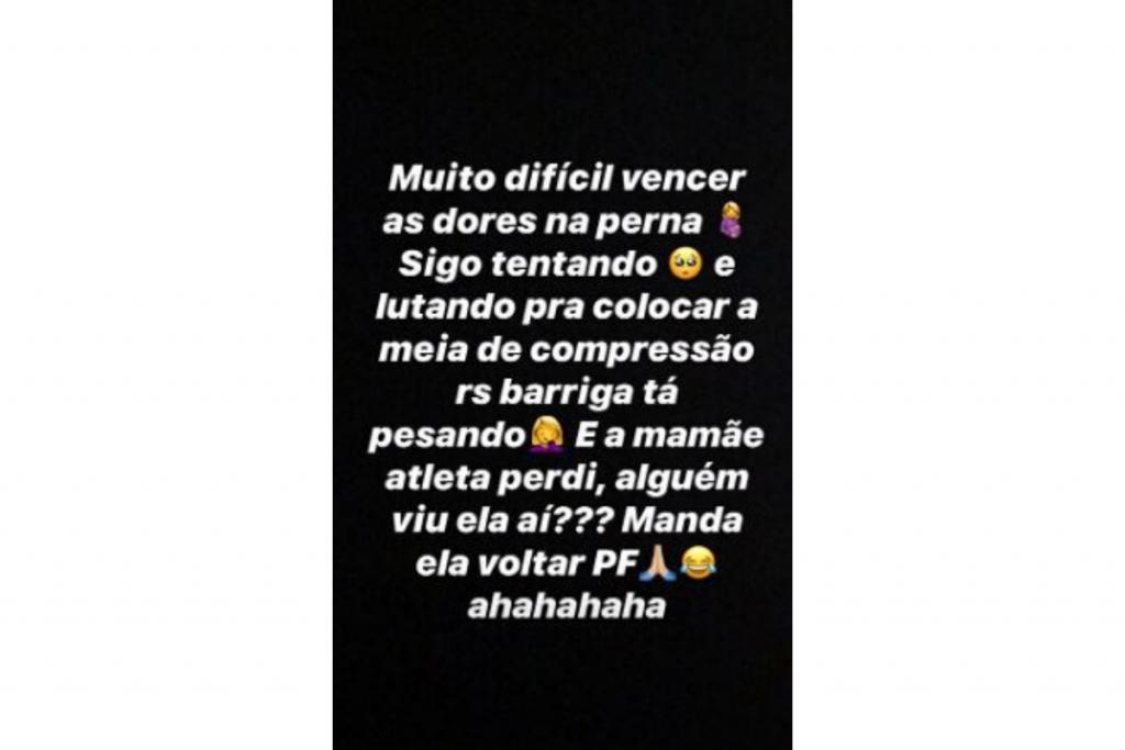 Na quinta-feira, 6 de fevereiro, Dany foi aos stories do Instagram para desabafar sobre as mudanças no corpo que acontecem na gestação. “Muito difícil vencer as dores na perna. Sigo tentando e lutando pra colocar a meia de compressão, barriga tá pesando! E a mamãe atleta perdi, alguém viu ela aí? Manda ela voltar, por favor hahahaha”, disse a produtora.