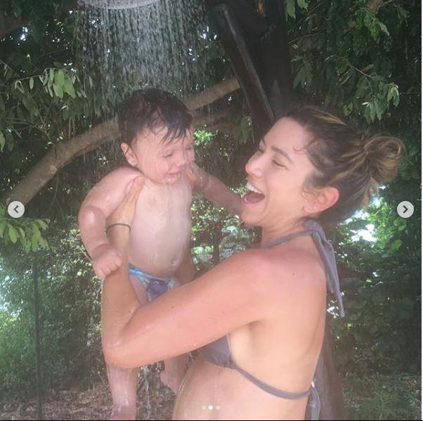 Patrícia também mostrou Jane se divertindo tomando banho de chuveirão: “Não aguentooooo!! #AmorQueMultiplica #Familia #DeusÉBomDemais”.