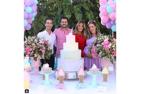 Ticiane Pinheiro marcou presença na festa ao lado do atual marido, César Tralli, além do avô orgulhoso, Roberto Justus. Fabiana está com 26 semanas e mostrou a coleção de roupas de grife que já comprou para as filhas, chegando a gastar 6 mil reais no total!