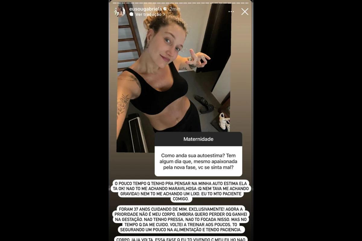 Nessa segunda-feira, dia 12 de dezembro, Gabriela Pugliesi desabafou nos stories do seu Instagram sobre como está sua autoestima no pós-parto. A influenciadora e musa finess contou que não se sente maravilhosa como durante a gravidez de Lion, mas também não se sente péssima. O bebê é fruto do seu relacionamento com Tulio Dek.