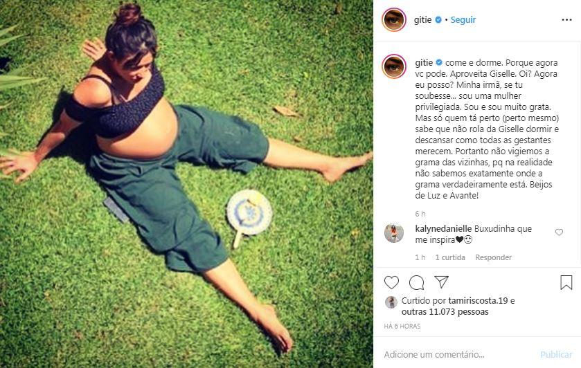 Ela fez um desabafo sobre os palpites que está recebendo (Foto: reprodução / Instagram @gitie)