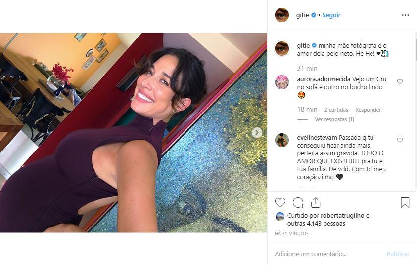 “Minha mãe fotógrafa e o amor dela pelo neto”, brincou Giselle na legenda da publicação. A atriz está no 5º mês da gestação e está esperando um menino, fruto de seu relacionamento com Guilherme Winter.