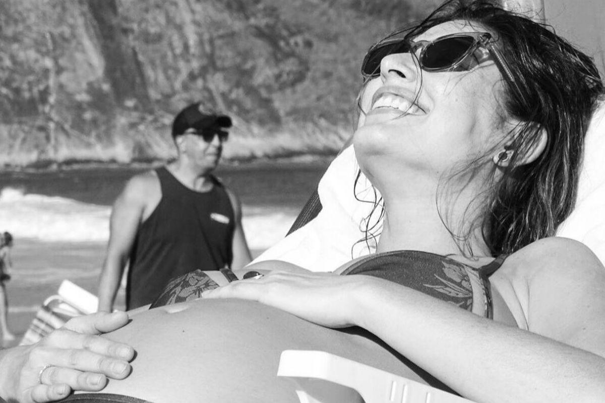 Giselle Itié publicou uma foto sorridente, no Instagram, no sábado, 28 de setembro. Na imagem em preto e branco, a atriz está com as mãos na barriga, aproveitando a praia. Na legenda da publicação, ela mostrou que nem tudo na gravidez é um mar de rosas.