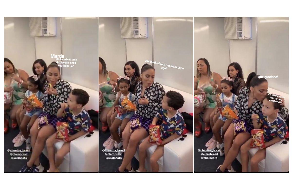 E foi aí que a polêmica começou. Anitta se sentou ao lado de um menino e cada um estava com um pacote de salgadinho na mão e depois de pegar alguns pedaços e colocar na boca, ela resolveu fazer um carinho na cabeça do garoto que estava próximo à ela.